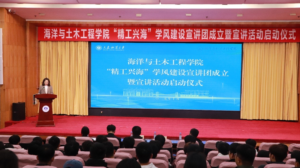 为深化学生价值引领,促进优良学风建设,10月23日,yl6809永利集团在图书馆报告厅举行“精工兴海”学风建设宣讲团成立暨宣讲活动启动仪式。学院党委书记纪元东、党委副书记乔彦娇、全体专职辅导员、2024级和2025级学生代表出席本次活动。活动由辅导员罗怀旭主持。