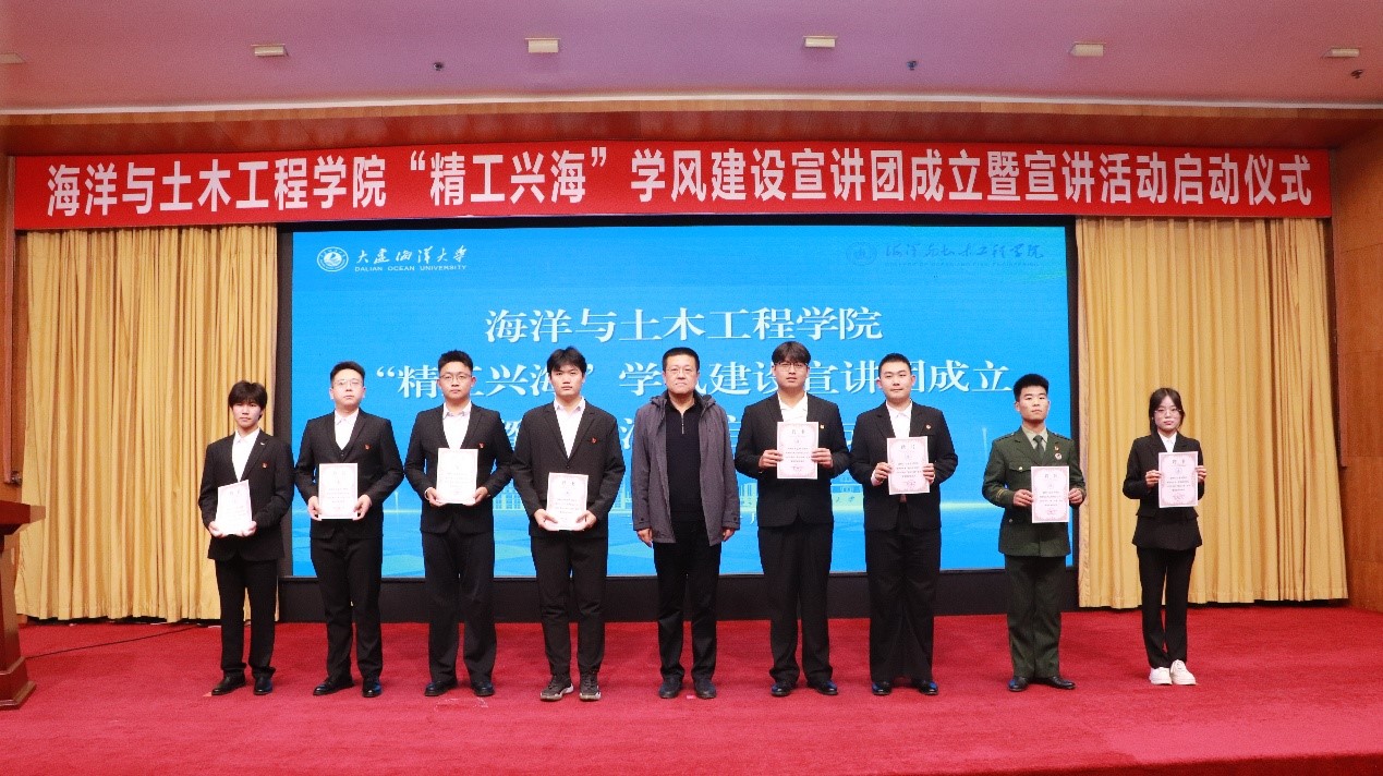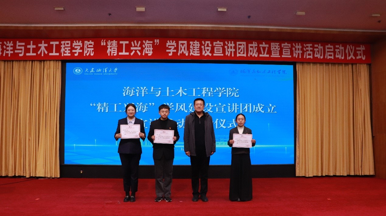 学院领导为“精工兴海”学风建设宣讲团成员颁发证书